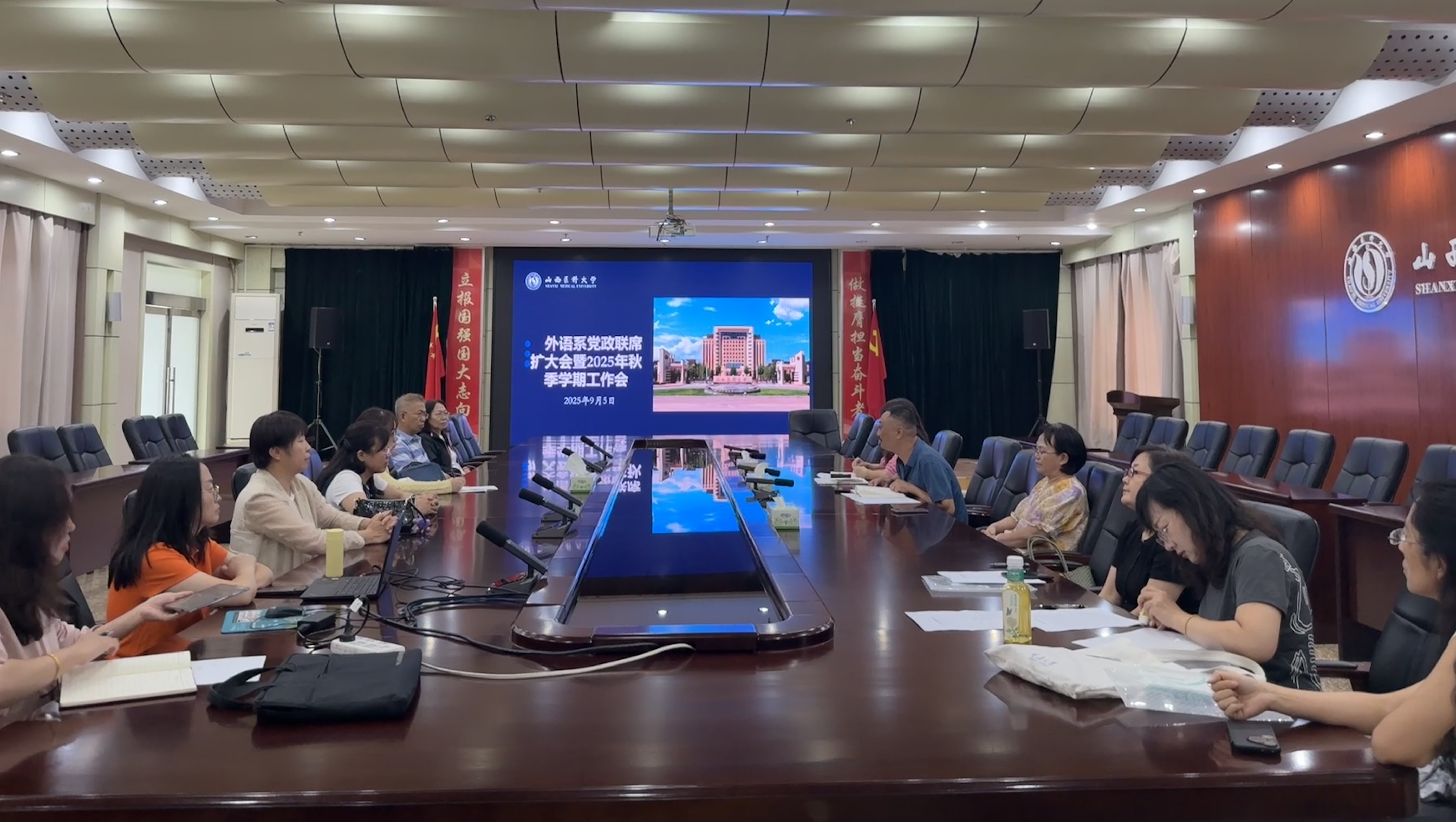 9月5日,外语系在迎泽校区行政楼十三层会议室召开党政联席扩大会暨2025年秋季学期工作会。会议由系党总支书记梁晋伟主持,系领导、支部书记、教研室主任及各科室负责人参会。