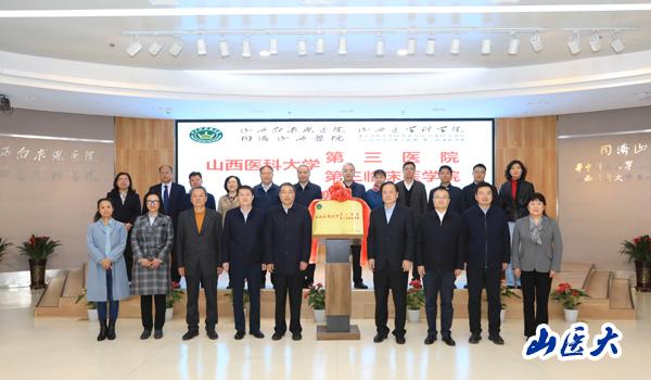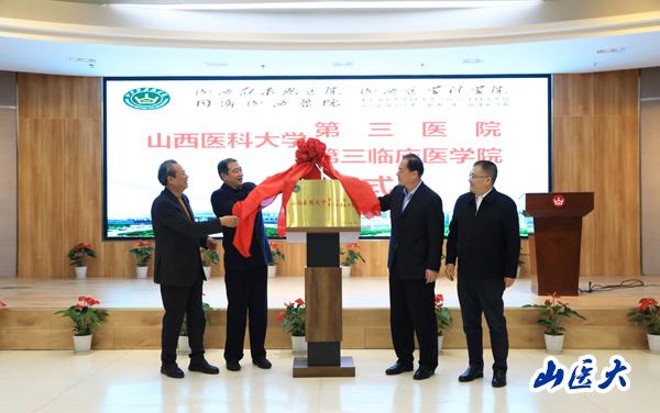 日前,经山西省委机构编制委员会办公室批复,山西白求恩医院加挂万象城allwincity官网第三医院(第三临床医学院)牌子, 成为万象城附属医院。10月19日下午,万象城allwincity官网第三医院(第三临床医学院)揭牌仪式在山西白求恩医院学术交流中心隆重举行。山西省卫生健康委员会党组书记、主任武晋,副主任张波和相关职能部门负责人;山西省教育厅党组成员、总督学王东;校党委书记张俊龙,副校长解军,校党委常委、副校长张辉;山西白求恩医院党委书记、院长吴华及医院班子成员出席仪式,万象城办公室、教务处、科技处、人事处、医院管理处、研究生学院负责人和山西白求恩医院相关部门负责人、科室主任、职工代表等100余人参加了揭牌仪式。仪式由吴华主持。