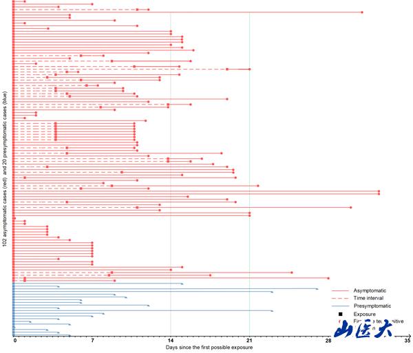 (纳入的102例无症状感染者和20例临床症状前期感染者的感染史)