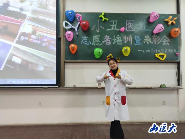 陈晨在讲座中介绍了山西小丑医生志愿活动的内容与方式、以及公益促进会的成立背景与发展历程,向同学们宣传了“微笑与爱,抚慰患者心灵,倡导医学人文情怀”的小丑医生服务理念。生动的照片与视频资料、丰富的活动内容、广泛的社会影响,增加了参会者对团队的了解,点燃了学生们对“小丑医生”志愿服务的兴趣与热情。