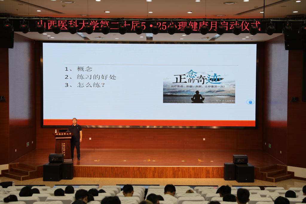 启动仪式后,特别邀请长治医学院专家秦涛开展了主题为《正念的力量》专题讲座。在轻松宁静的氛围中带领同学们体验一场别致的正念之旅。