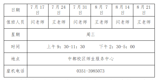 2.电话值班(如办理特殊业务或遇到紧急情况请联系闫老师,王老师)