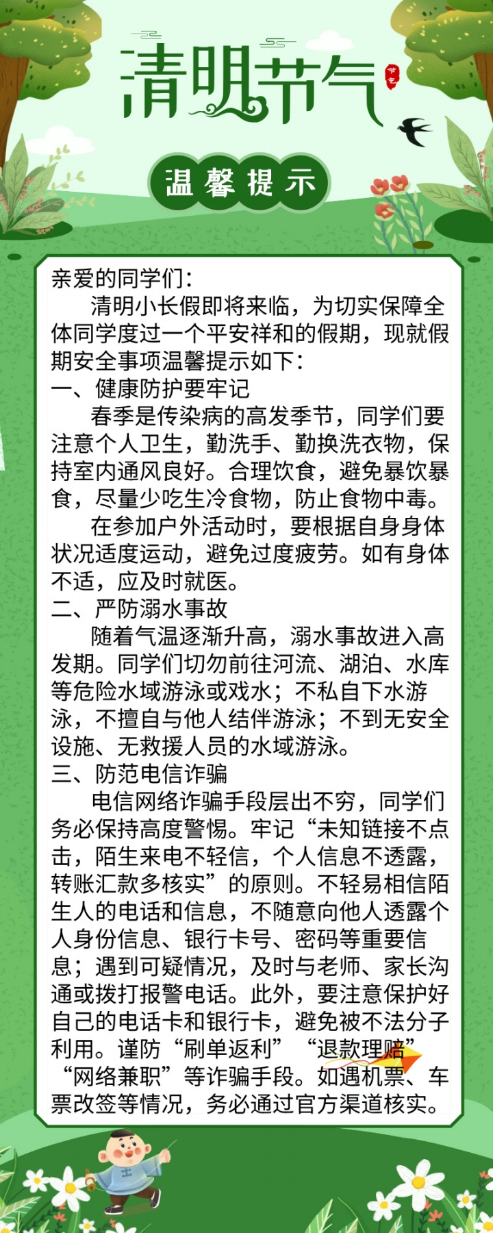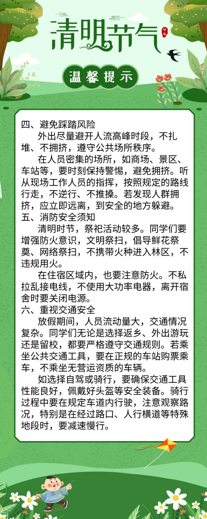 清明假期安全温馨提示