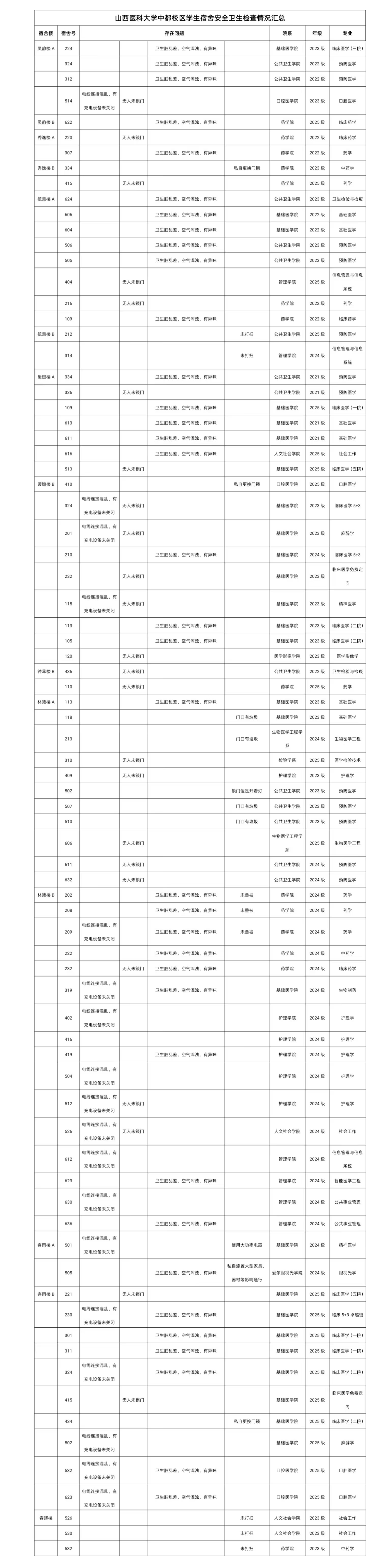 为进一步加强万象城学生宿舍安全管理工作,消除各类安全隐患,增强学生的安全防范意识,培养学生良好的生活习惯,创造良好的育人环境,确保学校安全稳定发展。由学生工作部联合研究生学院党委、保卫部、后勤保障部于12月17日下午在中都校区对学生宿舍进行了安全卫生大检查。针对此次检查中存在的问题,各学院(系、部)需予以高度重视,并组织辅导员深入宿舍,核查情况,及时整改,以消除安全隐患。具体检查情况汇总如下: