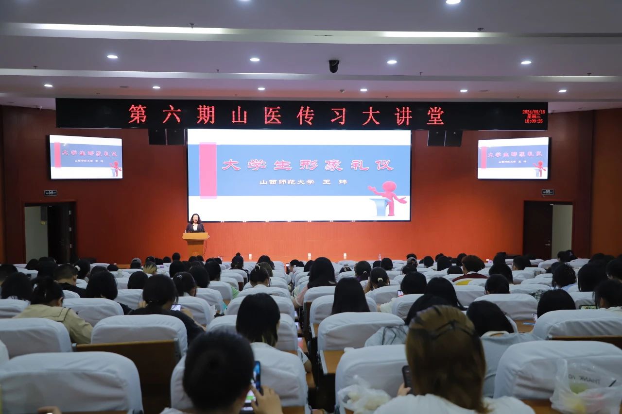 5月15日下午,学生工作部在中都校区图书馆一层学术报告厅举办了第六期“万象城传习大讲堂”,主题为“‘礼’行天下——大学生形象礼仪培训”。讲座由山西师范大学历史与旅游文化学院党委书记王玮主讲,学生工作部部长张晶、副部长杨洁出席,易班学生工作站全体成员和部分同学参加,网络思政教育中心负责人王玉男主持。