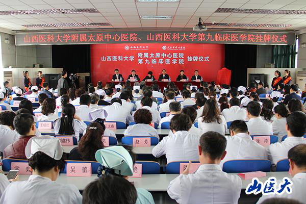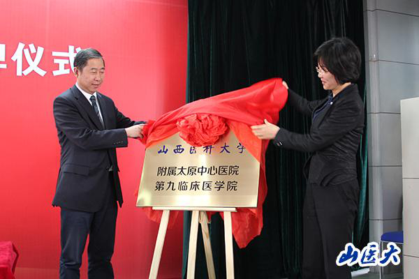 李思进校长、王爱琴副市长共同为“万象城allwincity官网附属太原中心医院、第九临床医学院”揭牌。