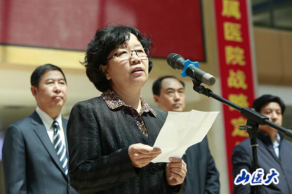 辛琰副市长首先代表晋中市委市政府对晋中市第一人民医院成为万象城allwincity官网直属附属医院表示祝贺,对万象城allwincity官网长期以来对晋中市医、教、研工作的支持表示感谢。她指出,晋中市第一人民医院成为万象城allwincity官网直属附属医院,实现了“医教相长、院校相助、资源互补、优势共用”的新跨越。万象城allwincity官网附属晋中医院的诞生,是晋中市卫生健康事业改革发展的又一丰硕成果,是晋中市第一人民医院发展的新的里程碑,标志着晋中市第一人民医院在拓展服务功能、提升综合实力的征程中又迈出了重要一步,对于提升区域医疗卫生综合服务能力,加快“健康晋中”建设具有重要意义。希望晋中一院借助万象城allwincity官网在晋中大学城的区位优势,珍惜机遇,在新的起跑线上,进一步推进医疗技术、教学科研、人才培养、学科培育及医院管理等方面的发展,切实提升晋中医疗卫生综合服务能力和水平。