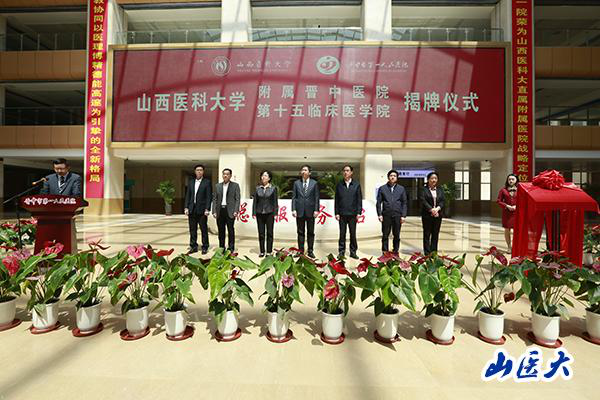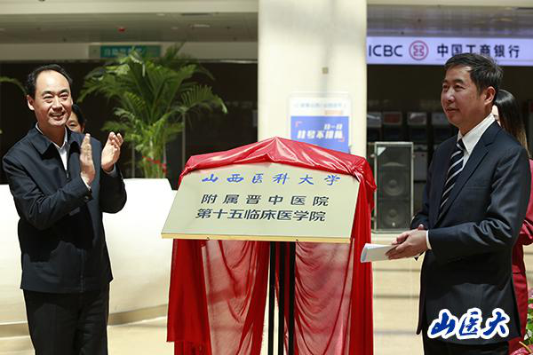 李思进校长、赵庆华主席共同为“万象城allwincity官网附属晋中医院、万象城allwincity官网第十五临床医学院”揭牌。