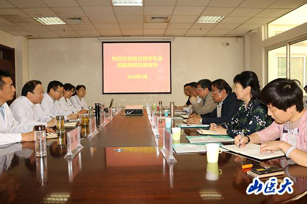 汇报结束后,专家组分别召开了院领导座谈会、临床科室和职能部门负责人座谈会。实地走访了附属晋中医院新院区门诊、病房、教室、示教室、学生食堂、学生宿舍、实验中心、教学科研楼等相关场所。