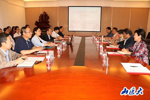 专家组一行在附属运城医院首先听取了院长报告。高萍院长从医院基本情况、医疗服务、学科建设、教学科研、存在不足及努力方向等几个方面进行了详细汇报。医院全体领导班子成员、临床科室负责人、职能部门负责人和部分教师代表参加了会议。
