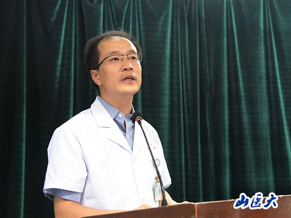 附属太原中心医院院长李新华代表院领导班子做了表态发言。他感谢学校对医院领导班子的信任与支持,他表示,医院(临床医学院)领导班子全体成员将坚定地讲政治、立目标、抓落实,尽快进入新角色,做好医院(临床医学院)发展规划,夯实内涵建设,依托学校雄厚实力全面加强医院管理,提升医院综合竞争力。