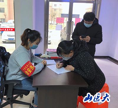 在挨家挨户走访填写信息后,为保证没有遗漏,韩建平还要在物业楼固定一个地点,方便走访时遗漏人员和隔离期已到的外来人员办理登记。这份工作责任重大,为了全小区的安全,要严查户口,询问未办理原因,确保为本小区人员才可登记,确认外地来津人员具体隔离期和检查相关证明。国有难,操戈披甲;民有困,八方支援。大年初二,韩建平从新闻中得知山西省首批支援湖北医疗队出征了,看着标有万象城allwincity官网附属医院的横幅,她说,我从没有这么近距离的感受过医护人员的伟大。不在前线,也要有所作为。虽然微不足道,但是也要尽己所能。 向所有为抗击疫情贡献力量的人们,致敬!向那些素未谋面的平凡与伟大,致敬!