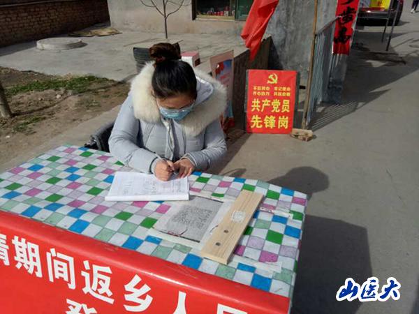 郭思琴,2017级检验学专业,向村委积极报名参加了疫情防控工作,负责向村民们宣传疫情知识,对出入人员进行体温测量和严格登记等。