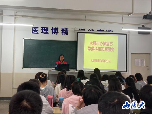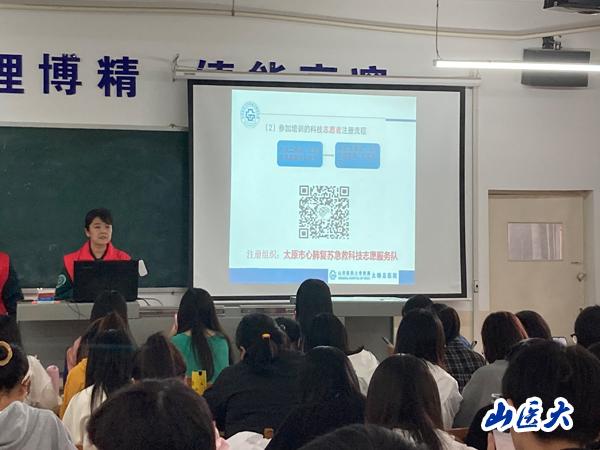 科技志愿服务队兰兴梅老师向同学们介绍了太原市心肺复苏急救科技志愿服务——太钢集团总医院分队的基本情况。同学们了解之后都纷纷积极注册加入到科技志愿服务队中,成为其中一员。