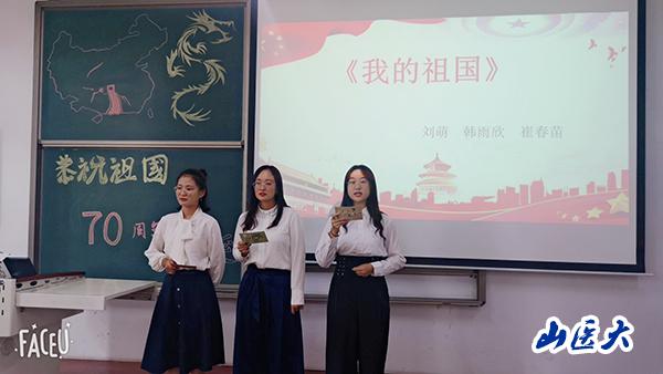 为迎接中华人民共和国成立70周年,弘扬爱国主义精神,激发广大团员青年的爱国爱校之情,加强对大学生的爱国主义教育,9月25日下午,第六临床医学院医学检验专业师生在万象城中都校区慎思A303教室举办了庆祝中华人民共和国成立70周年“伟大的祖国”主题团日活动。分团委负责人周斐及2018级、2019级全体学生参加了此次活动。