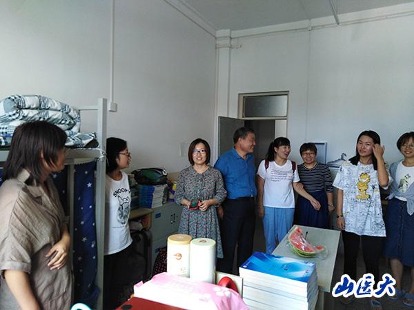 8月25日下午,第六临床医学院党委副书记蔚钰琼、教务科科长张随法、学生科科长王云霞、学生党支部书记周斐和各年级思想政治辅导员深入学生寝室,走访了解学生的返校情况,给同学们送上新学期的问候和美好祝愿。