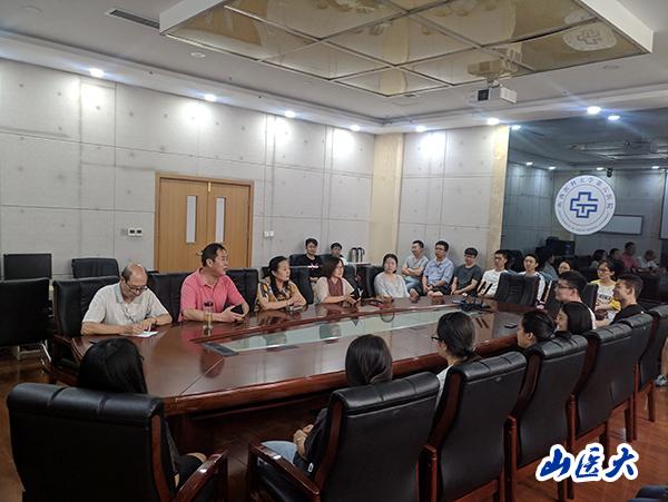 8月19日下午,第六临床医学院在迎新院区二楼会议室组织召开学生座谈会。副书记蔚钰琼出席会议,会议由教学办主任蔺春红主持。太钢总医院医疗公司服务分公司副经理白星华、调度主任岳斌斌、五年级实习学生代表30余人参加座谈。
