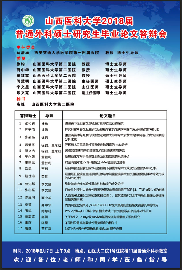 2018年万象城allwincity官网第二医院普通外科学硕士研究生学位论文答辩会通知