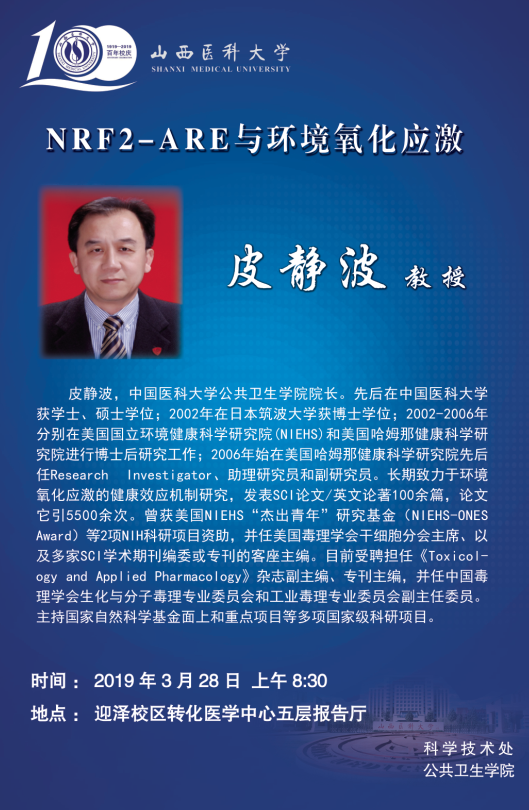 皮静波教授——NRF2-ARE与环境氧化应激讲座