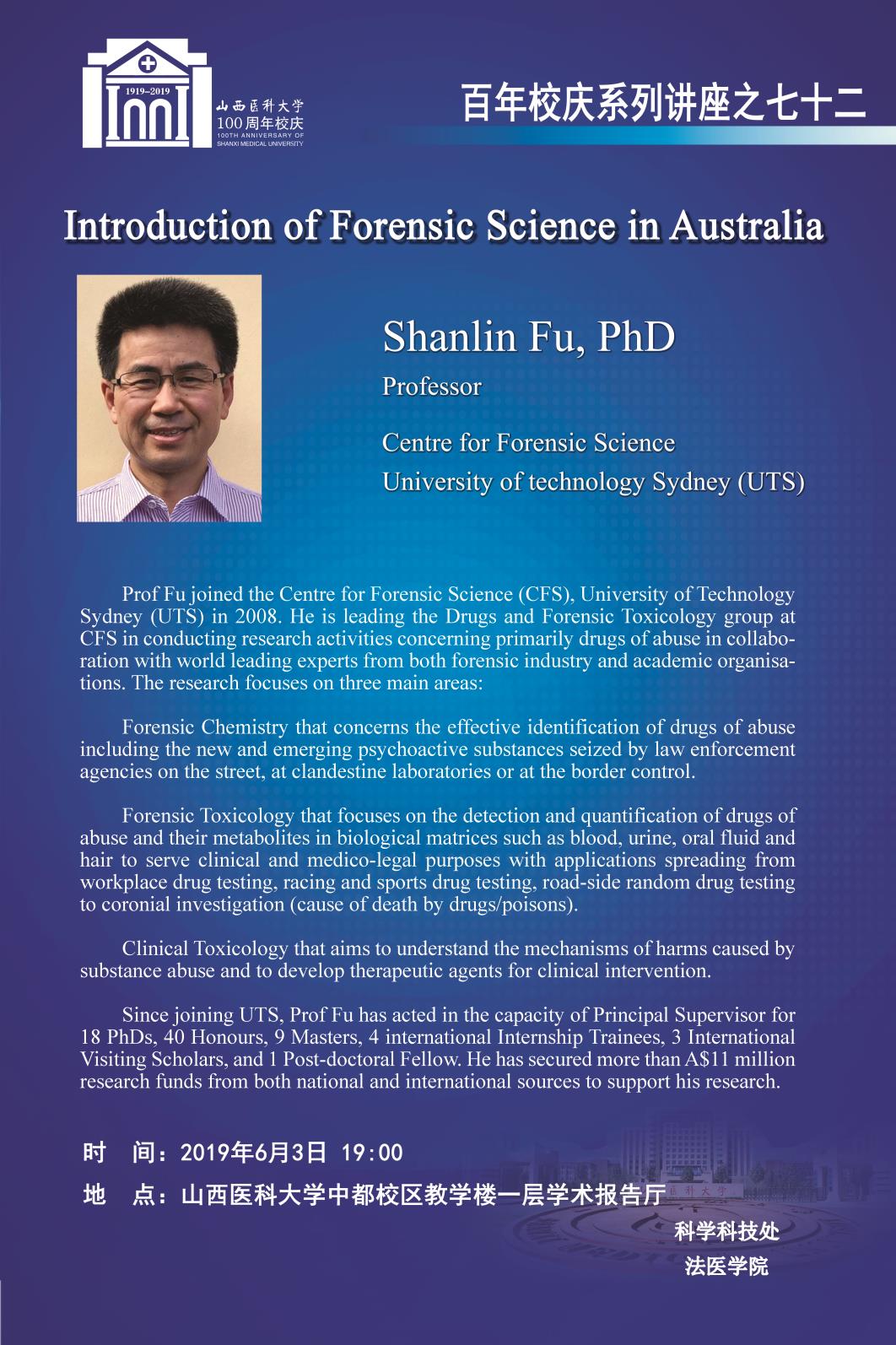 Shanlin Fu,PhD——Introduction of Forensic Science in Australia