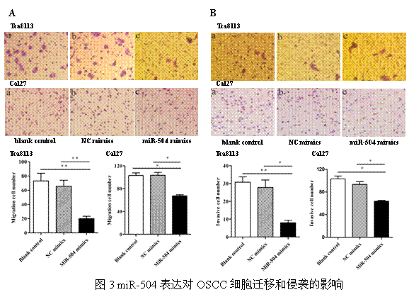 2 miR-504表达对OSCC细胞生物学行为的影响
