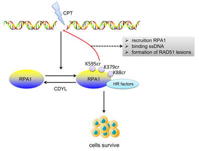 图3 RPA1 Kcr在喜树碱(CPT)诱导DNA双链断裂(DSB)中的作用