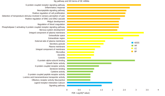 图1. 差异mRNA的GO功能和KEGG通路富集分析