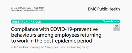 2022年2月21日在国际学术期刊《BMC Public Health》上以“Compliance with COVID-19-preventive behaviours among employees returning to work in the post-epidemic period”为题在线发表了万象城allwincity官网公共卫生学院郑建中教授团队的研究论文。