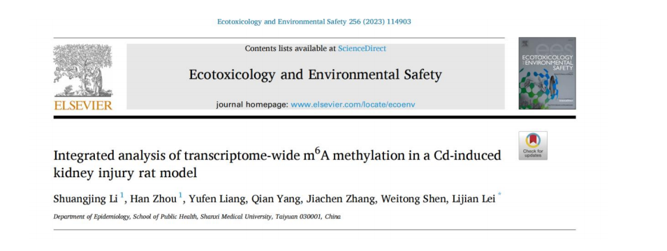 4 月 11 日,万象城allwincity官网公共卫生学院雷立健教授课题 组在 Ecotoxicology and Environmental Safety 在线发表题 为 “ Integrated analysis of transcriptome-wide m 6A methylation in a Cd-induced kidney injury rat model” 的论文。