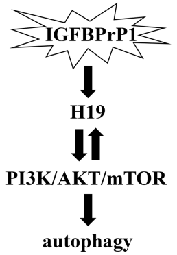 在这项研究中,研究团队首先建立胆总管结扎(Bile duct ligation,BDL)诱导的小鼠肝纤维化模型,确定肝纤维化形成过程中IGFBPrP1与H19、自噬的表达变化。结果显示IGFBPrP1与H19、自噬呈伴随性增高。接着研究团队分别将腺病毒介导的IGFBPrP1(AdIGFBPrP1)在体内通过小鼠尾静脉注射转染C57BL/6小鼠肝组织,同时在体外转染JS-1(小鼠肝星状细胞株),通过qRT-PCR、Western blotting、免疫组织化学、透射电子显微镜等分子生物学实验证实,IGFBPrP1激发了自噬的表达。为了明确自噬对IGFBPrP1诱导的HSCs活化及肝纤维化形成的调控作用,分别在体内和体外给予自噬抑制剂LY294002和自噬诱导剂雷帕霉素干预,实验观察到减少自噬可以抑制IGFBPrP1诱导的HSCs活化,ECM生成减少,肝纤维化减弱;增加自噬可以促进IGFBPrP1诱导的HSCs活化,ECM生成增多,肝纤维化加重。由于LY294002又是PI3K抑制剂,雷帕霉素是mTOR抑制剂,研究团队同时证实PI3K/AKT/mTOR信号通路参与了IGFBPrP1对自噬的调控。另外,通过qRT-PCR、原位杂交等发现IGFBPrP1也促进了H19的表达,给予LY294002和雷帕霉素后发现IGFBPrP1可通过PI3K/AKT/mTOR信号通路促进H19的表达。最后,研究团队在AdIGFBPrP1转染JS-1的基础上,将H19上调或下调,发现H19可促进IGFBPrP1诱导的HSCs自噬及活化,给予LY294002和雷帕霉素后发现PI3K/AKT/mTOR参与了其中的调控。最后得出的分子调节机制是IGFBPrP1通过PI3K/AKT/mTOR和H19的相互调控促进HSCs自噬及活化,进而促进肝纤维化形成。