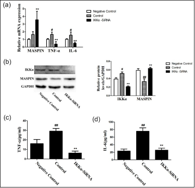 图5IKKα沉默促进MASPIN表达、抑制炎性细胞因子表达