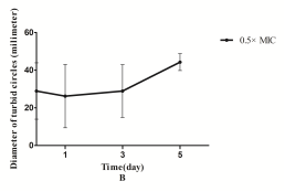 B: 0.5×MIC浓度下,泳动能力的变化趋势。