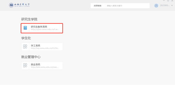 5、研究生教务系统登录,账号学号,密码为企业微信门户密码修改收到的消息,同VPN。