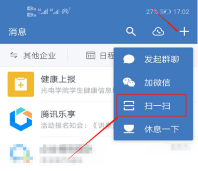在线上系统预约报名成功后,同学们须在入场就坐后进行现场签到,届时同学们可打开企业微信“扫一扫”,扫描二维码签到。