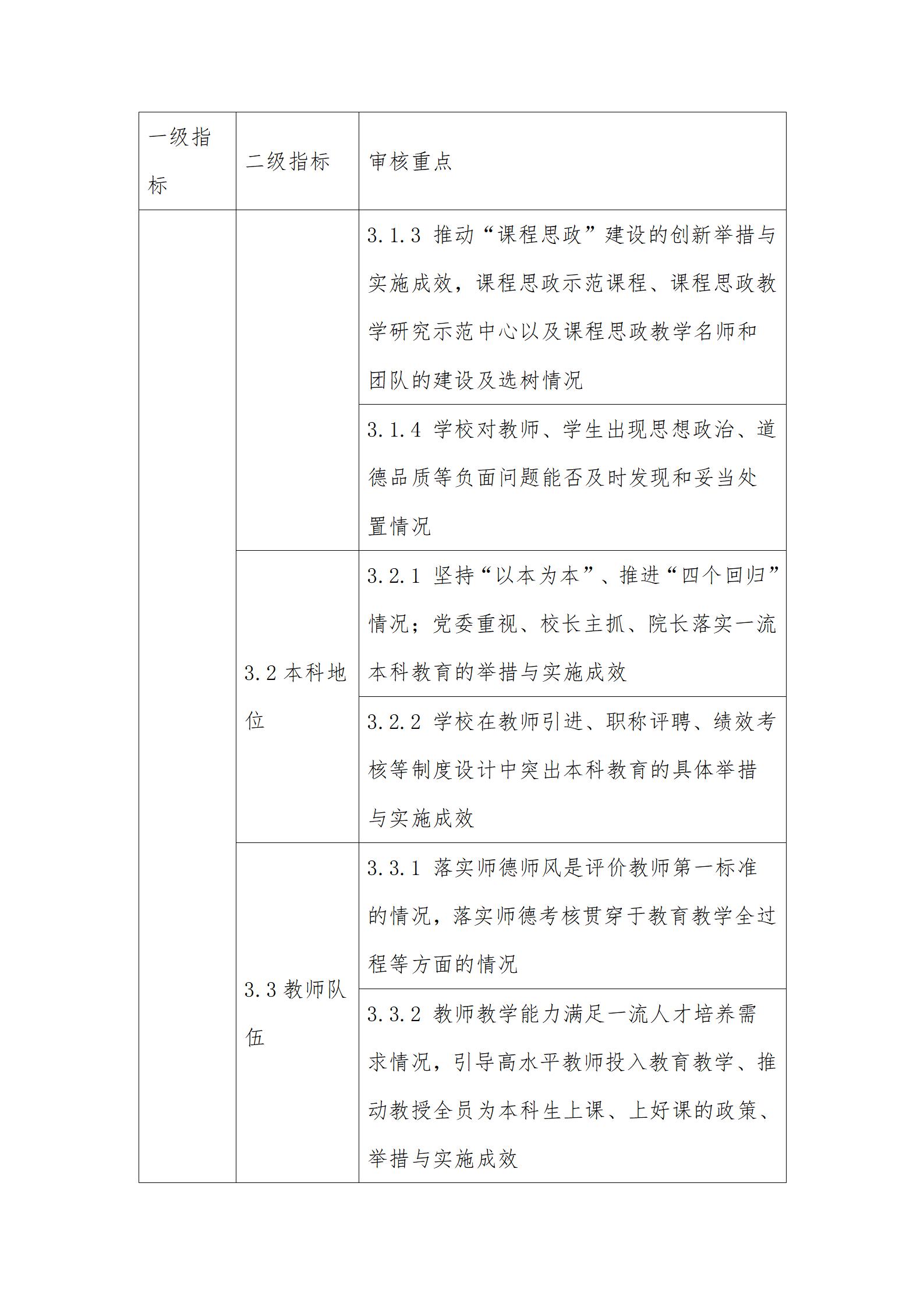 (一)坚持立德树人。把牢社会主义办学方向,构建以立德树人成效为根本标准的评估体系,加强对学校办学方向、育人过程、学生发展、质量保障体系等方面的审核,引导高校构建“三全育人”格局。