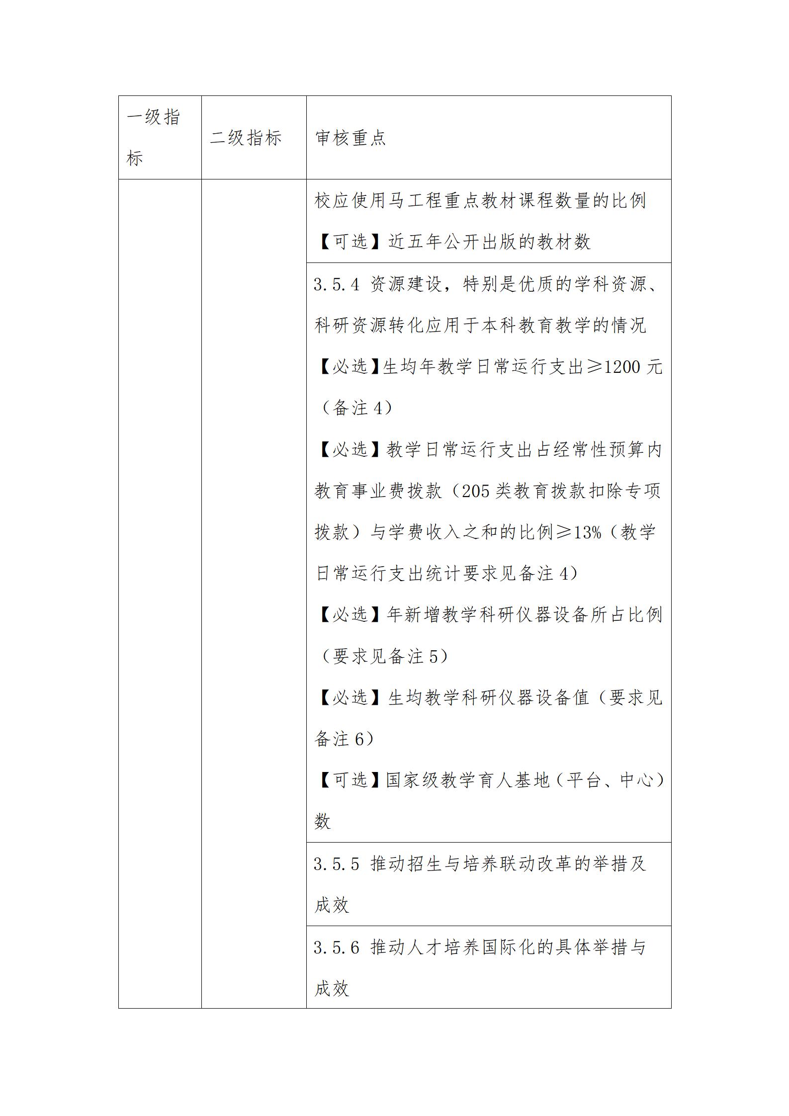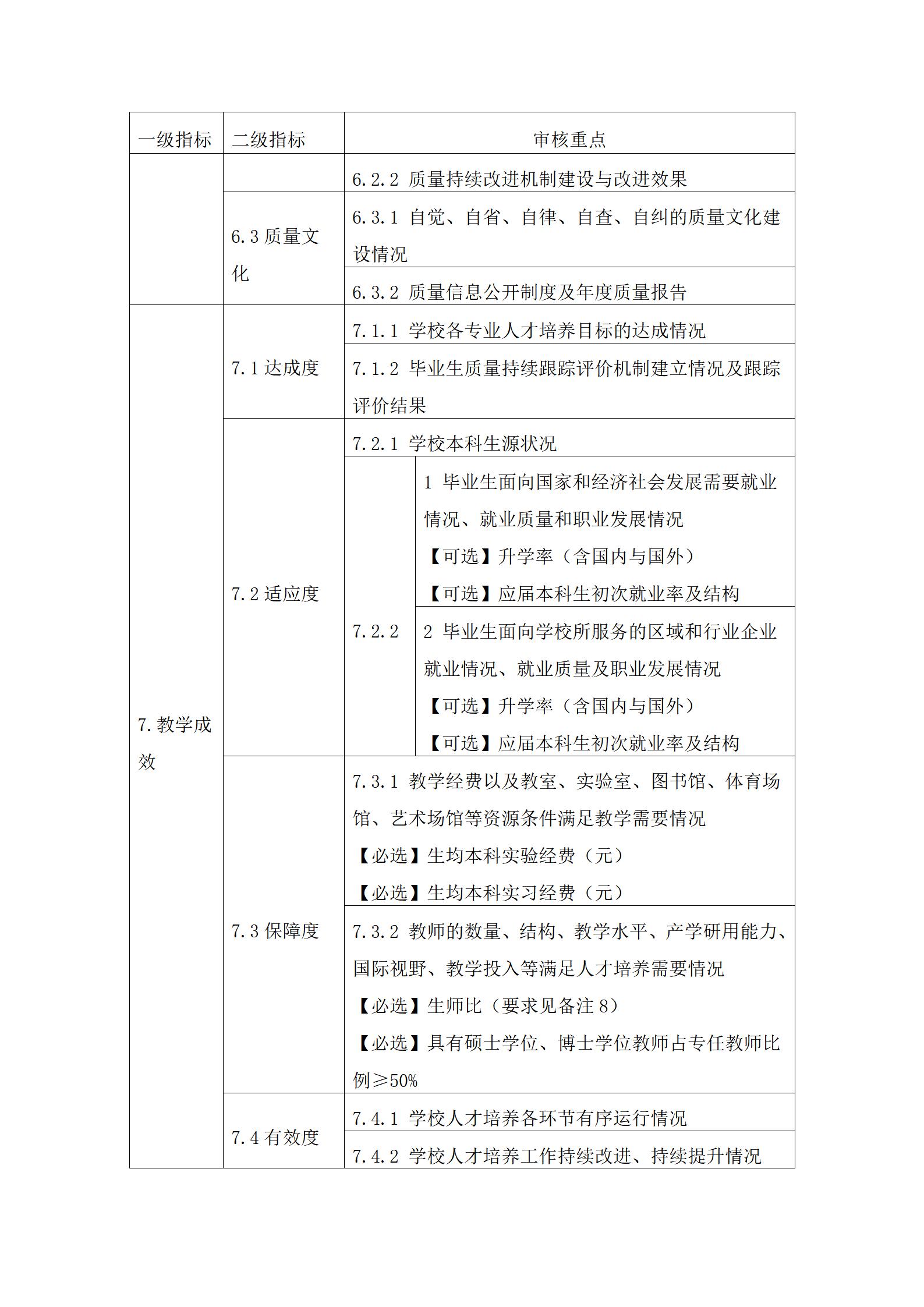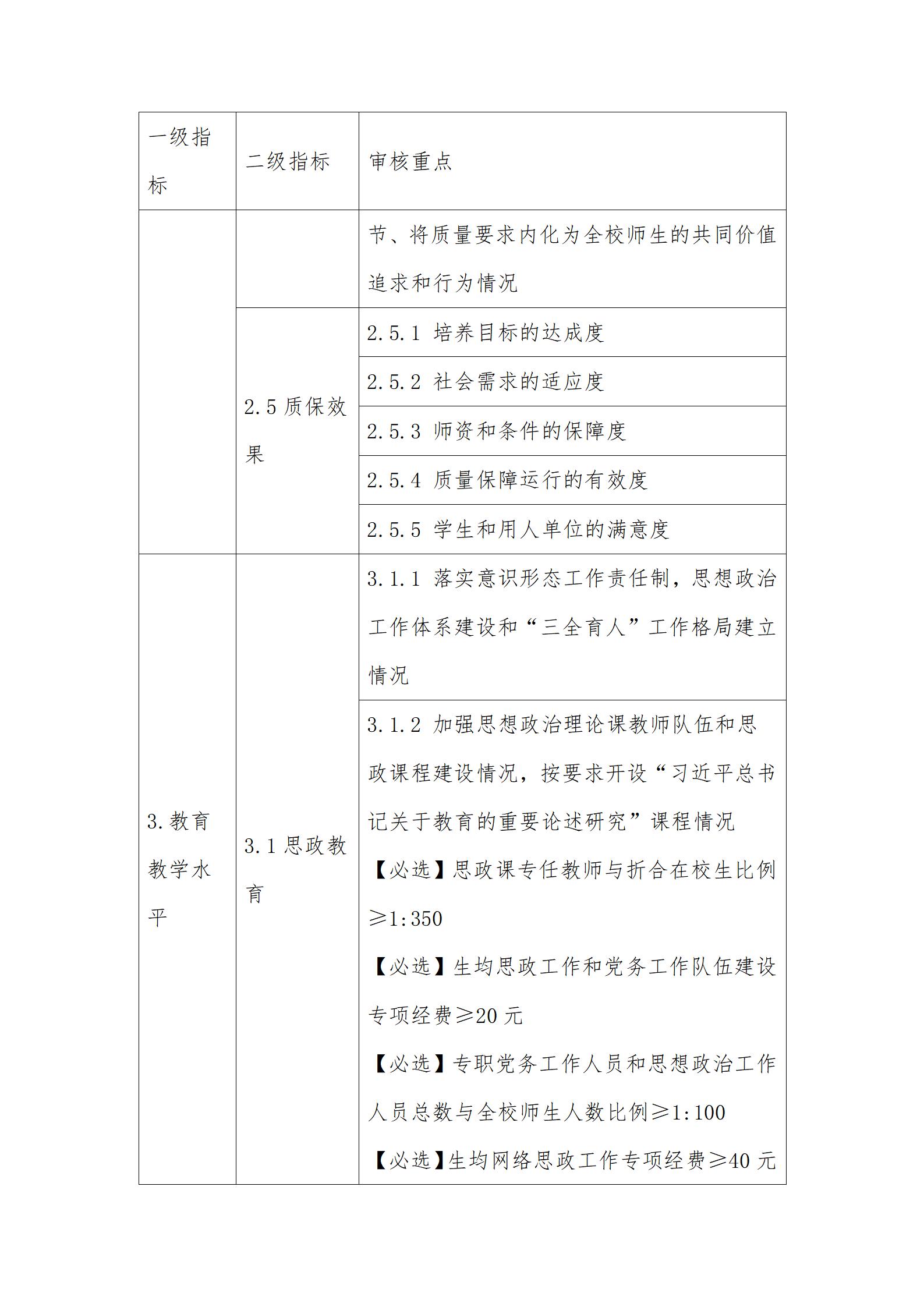 3.审核重点中定量指标的具体要求可参考国家相关标准。其中,【必选】是指该定量指标学校必须选择;【可选】是指该定量指标学校可根据自身发展需要和实际情况自主选择至少8项。