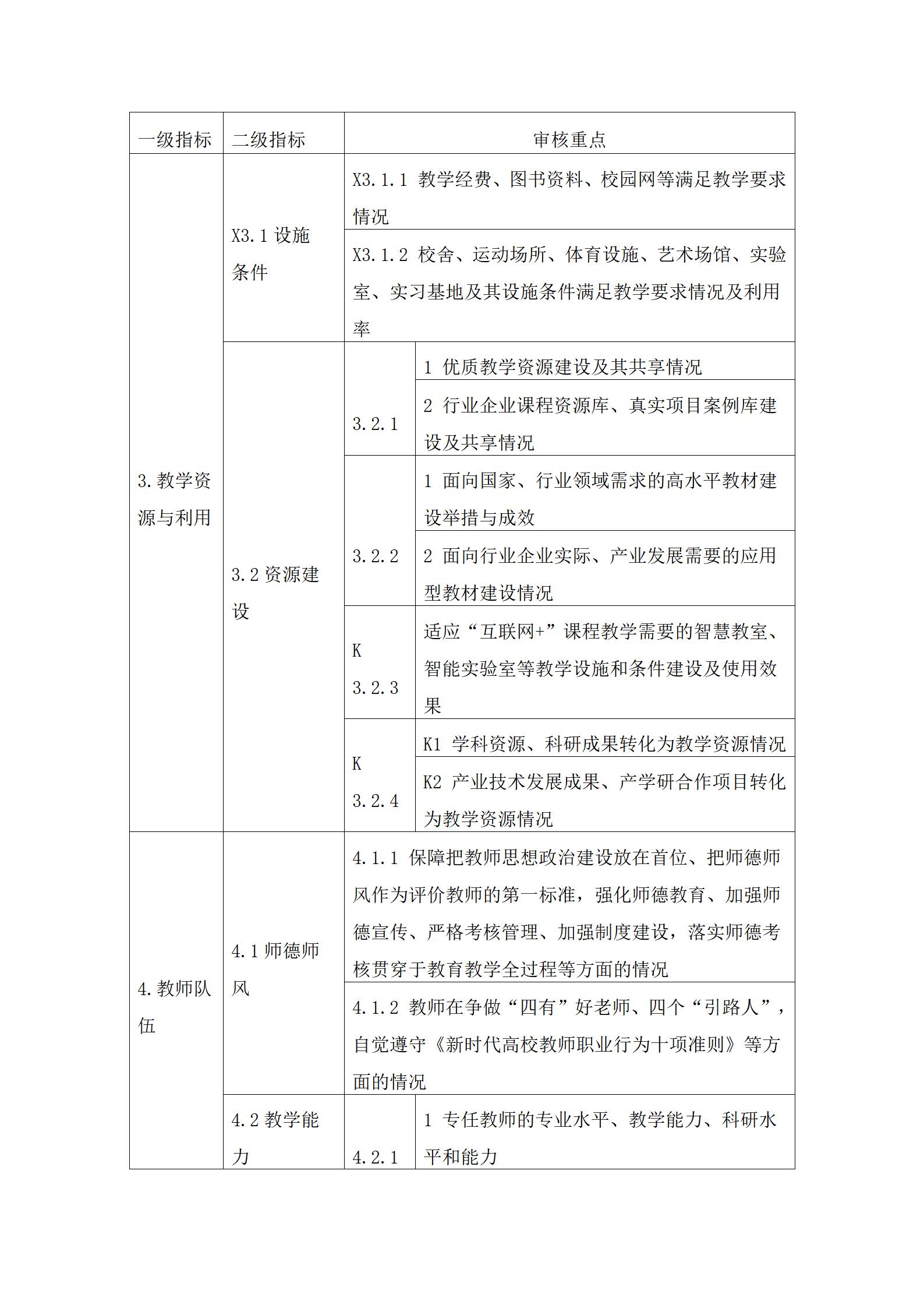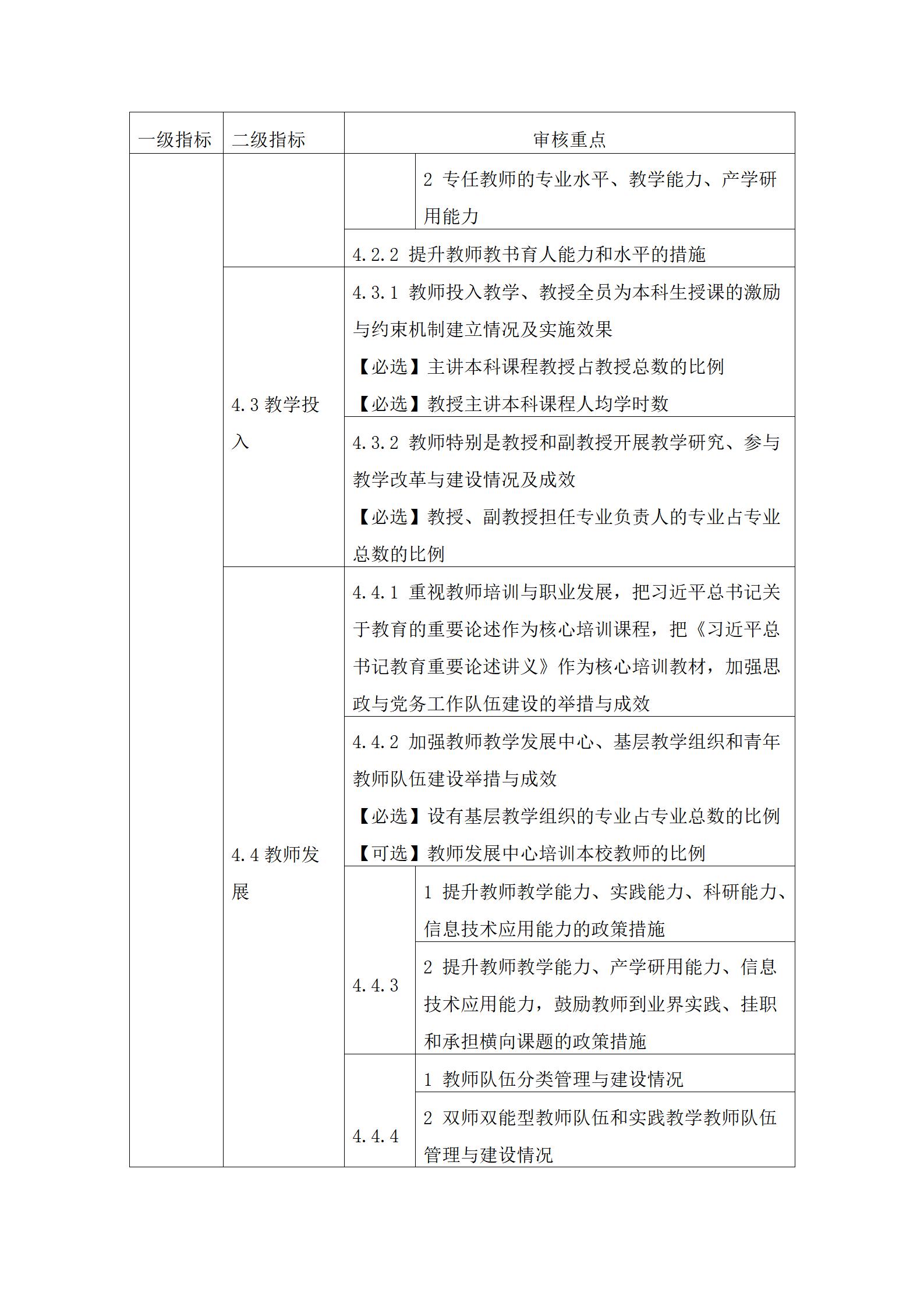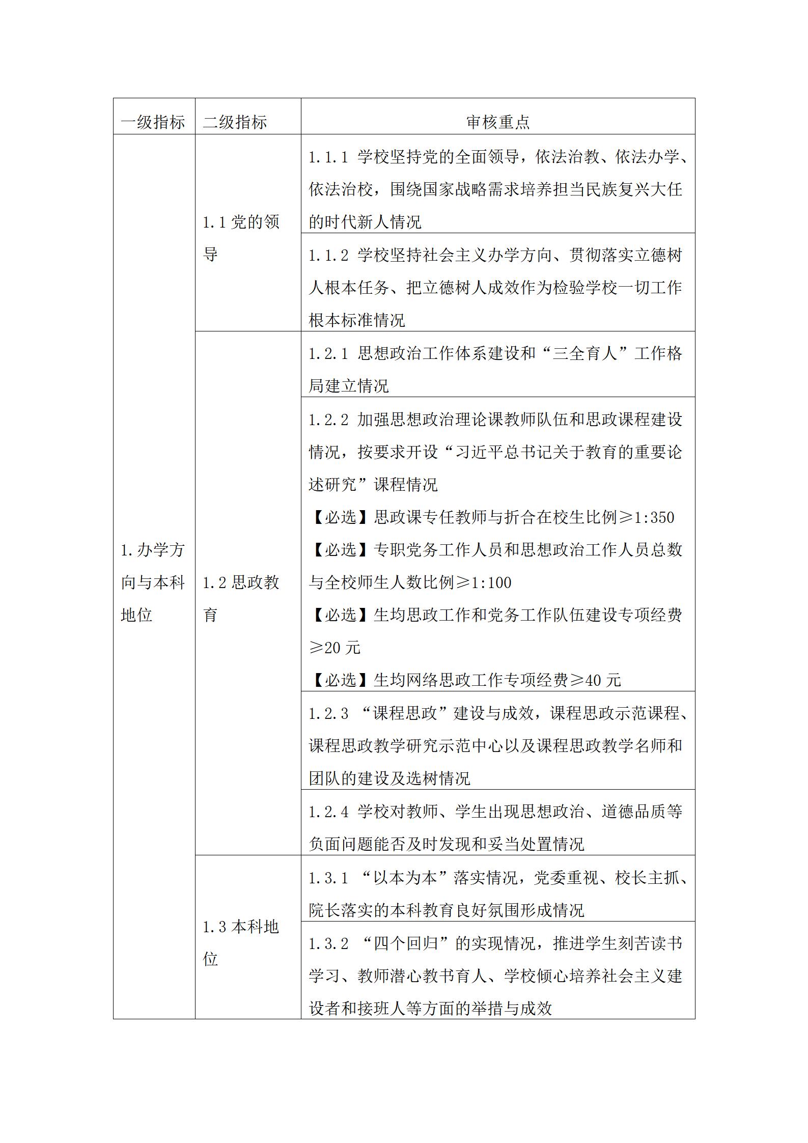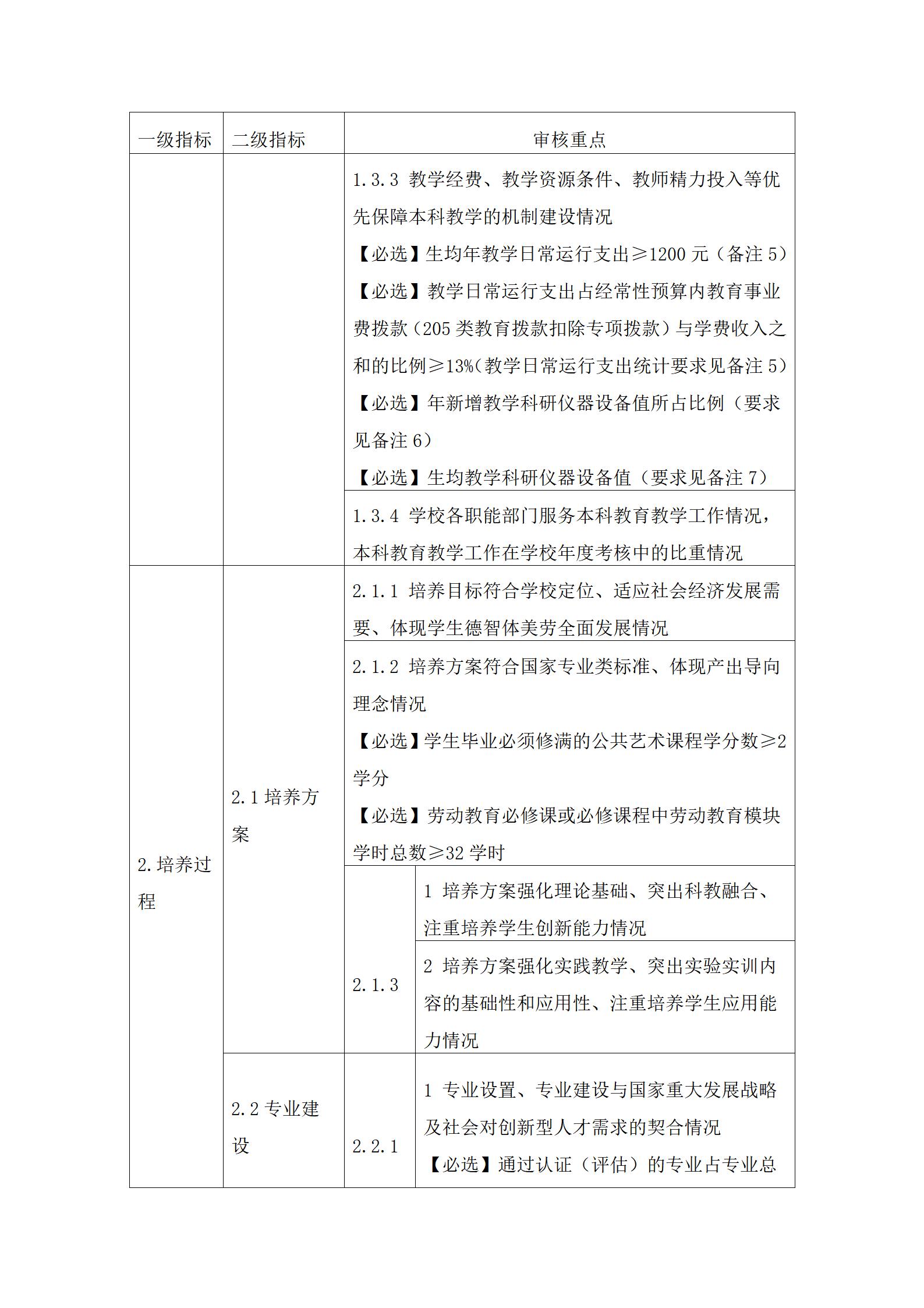 3.审核重点中定量指标的具体要求可参考国家相关标准。其中,【必选】是指该定量指标学校必须选择;【可选】是指该定量指标学校可根据自身发展需要和实际情况自主选择至少8项。