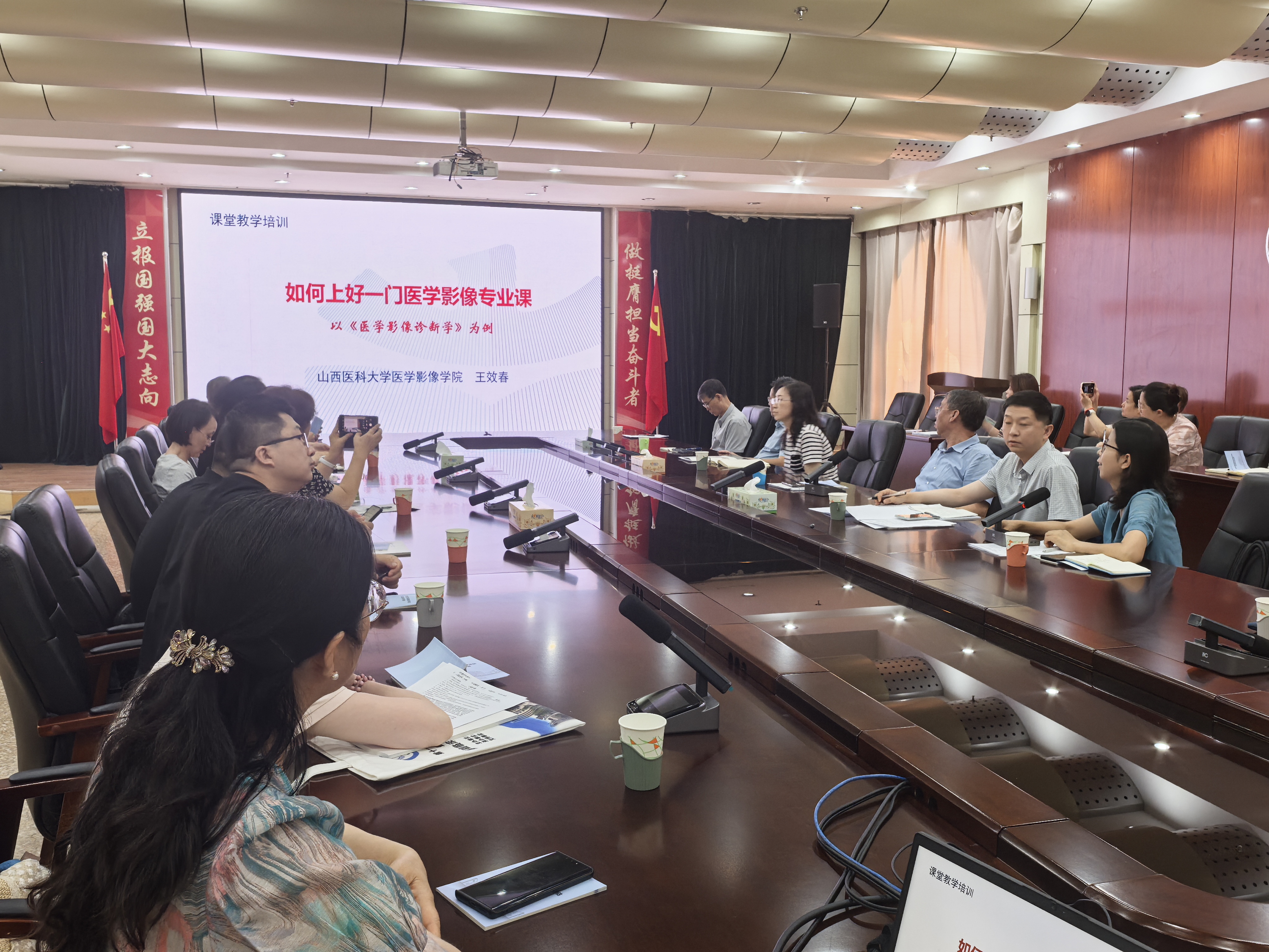 为扎实推进本科教育教学审核评估评建工作,进一步强化教学建设,切实提升课堂教学质量,医学影像学院于8月13日,在迎泽校区十三层会议室召开以评促强·本科课堂教学培训会。学院领导班子、全体教职员工及教研室主任、秘书参会。培训会由院长牛金亮主持。