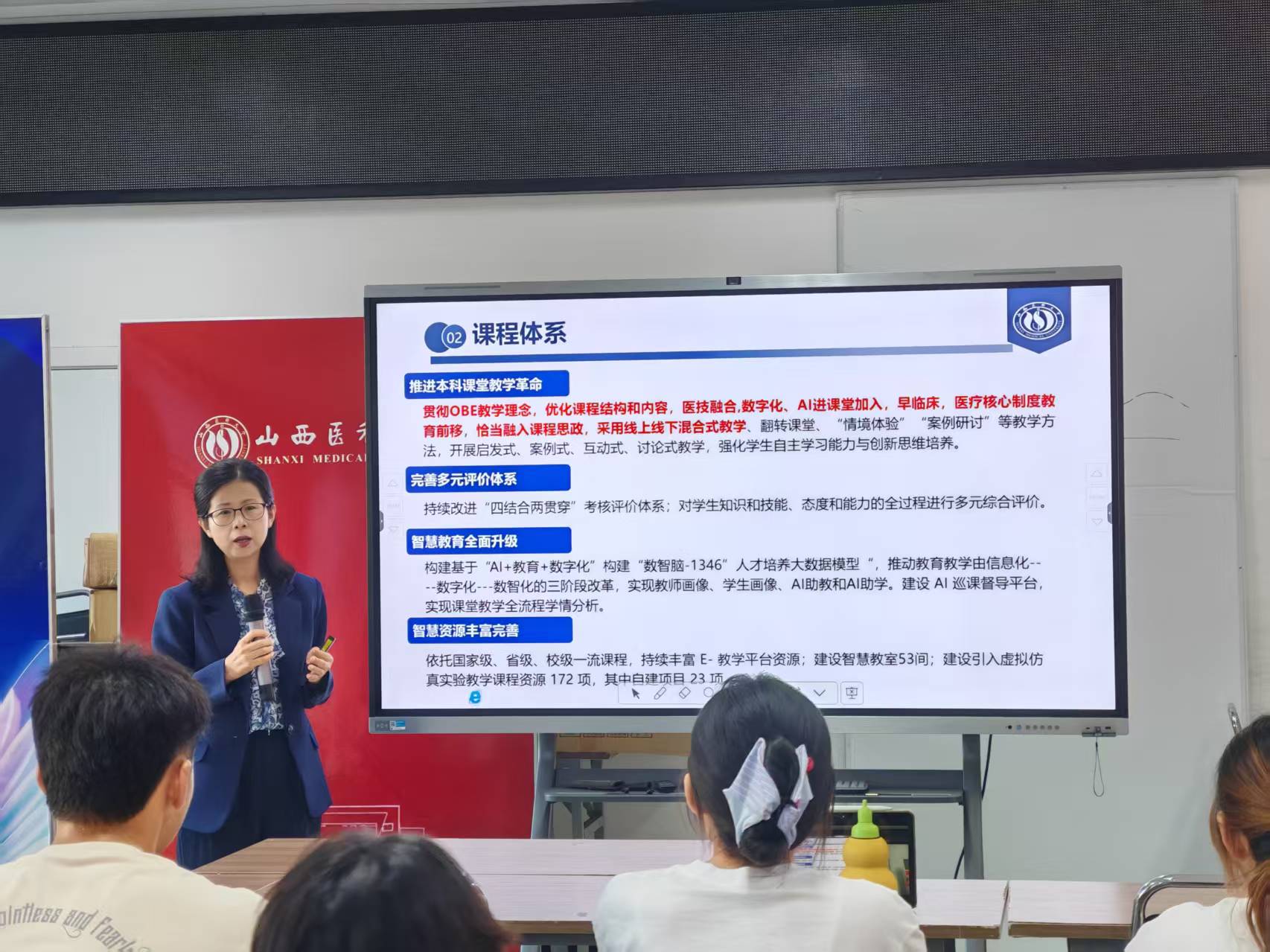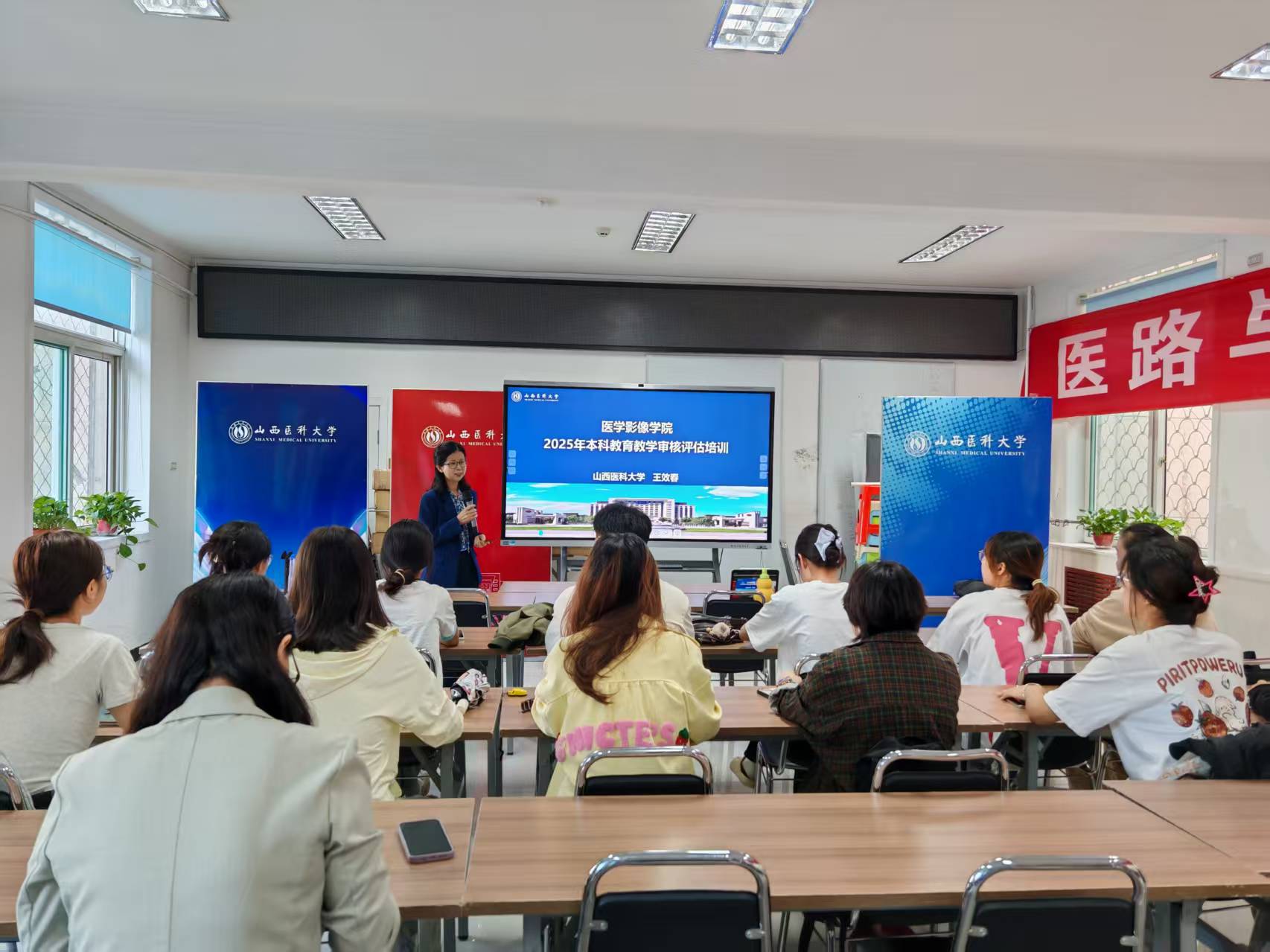 培训紧紧围绕本科教育教学审核评估的核心内容展开,副院长王效春介绍了医学影像学院发展史,系统阐述了医技融合、早临床、智慧教育等关键议题;对医学影像学、医学影像技术两个专业的专业人才培养方案进行了讲解,确保学生了解熟悉自己所学专业的培养方案;并指出教育教学应坚持“OBE理念”,构建“两性一度”课程体系,强化“专业基础+考核特色”课程体系建设,重构“一轴四驱”实践教学体系,全面提升学生的实践创新能力;同时对学院的师资队伍建设、教学资源、质量保障等做了详细的讲解。