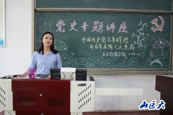 为深入贯彻落实习近平总书记在党史学习教育动员大会上的重要讲话精神,形成全体师生自觉学习党史的良好氛围,4月14日下午和17日晚,医学影像学院分别于中都校区慎思楼C103教室和迎泽校区第16教室组织开展了党史学习教育专题辅导,邀请马克思主义学院教师、医学影像学院2019级医学影像技术专业辅导员李慧慧担任主讲。2016级医学影像学专业(线上和线下)、2017级医学影像学和医学影像技术专业、2018级医学影像技术专业、2019级医学影像学专业、2020级医学影像技术专业全体学生及辅导员参加了学习。