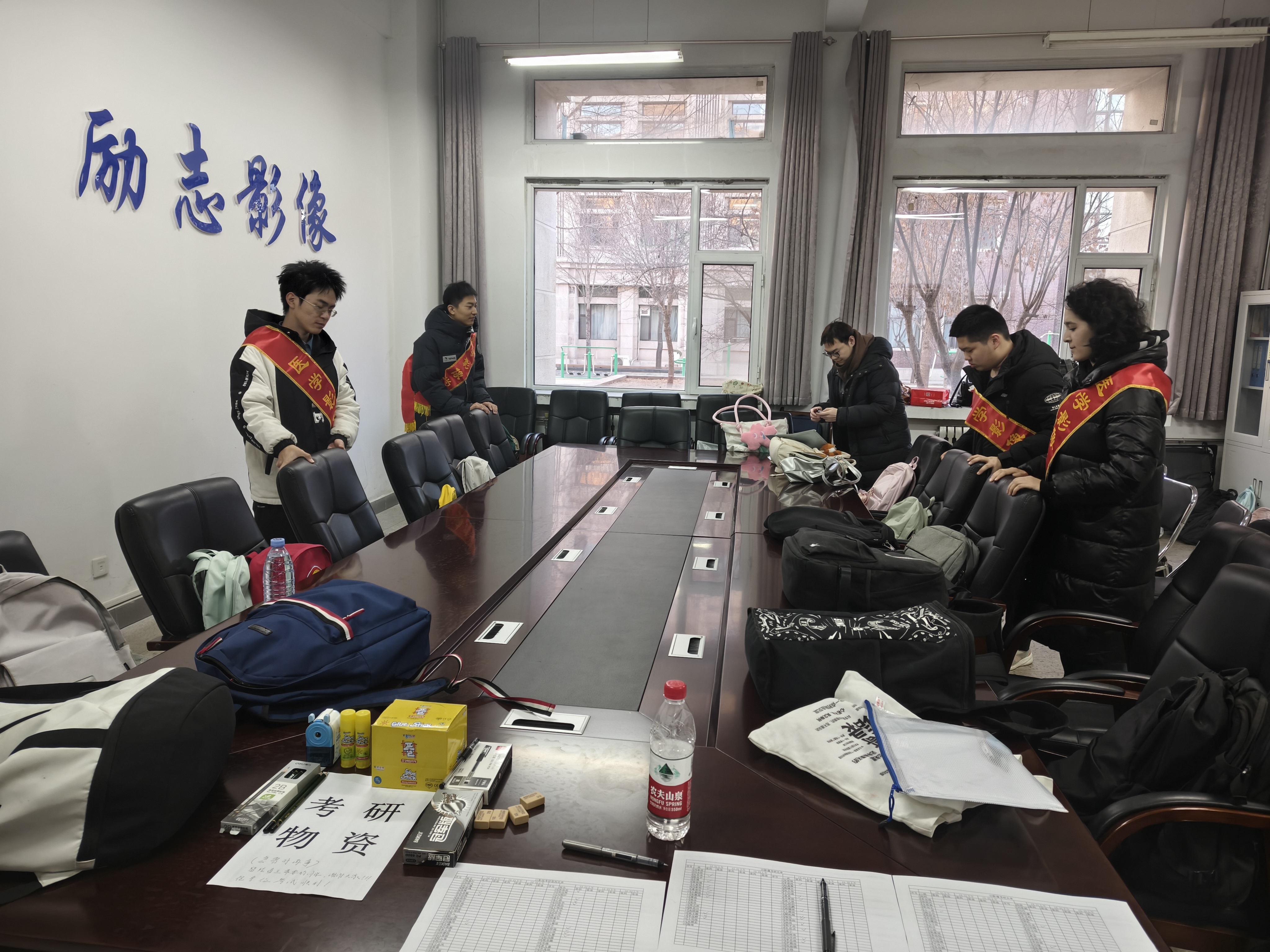 活动由学生会各个部门协同展开,各部门各司其职,文体部的成员为此次活动准备基本的考研必需用品;生活部的成员负责了解考研学子的信息及需求,根据天气情况准备暖宝宝、热水,提供温暖服务;文体部和生活部成员在上午8:00前,下午13:30前到达至善B108会议室并提前准备好所需物品:2B铅笔、无封套橡皮、胶棒、0.5毫米书写黑色字迹笔等备用规定的文具用品,为考生提供物质保障。在研究生考试的各个时间段均有志愿者为考生保驾护航。