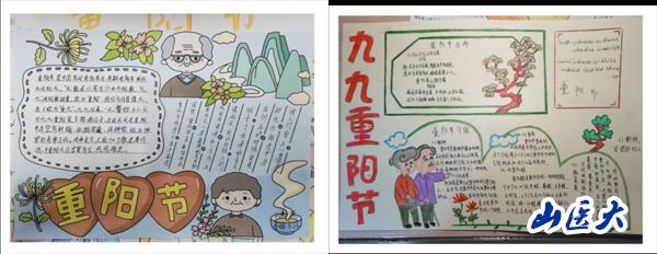 主题团日活动分别以“九九重阳节,向革命先辈学习”主题学习会,书法、手抄报等主题作品征集与展览,设置留言板为老人写下祝福语,为身边的老人进行“送温暖”活动等形式开展。2021级医学影像技术专业本科生进行了留言活动和优秀作品征集。
