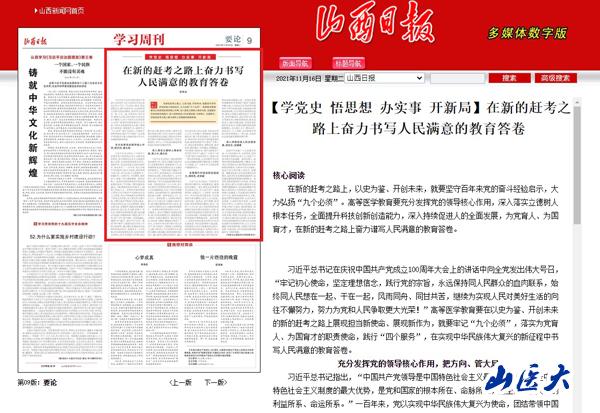 11月16日,《山西日报》第9版“要论”版刊发校党委书记张俊龙教授署名文章《在新的赶考之路上奋力书写人民满意的教育答卷》。