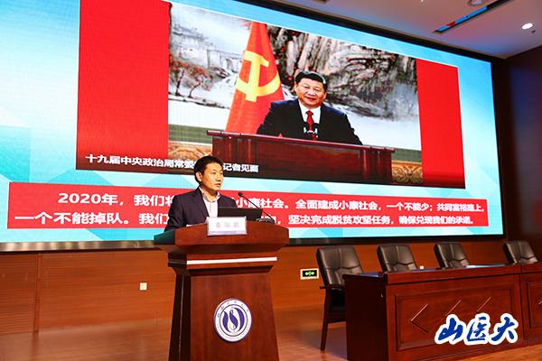 学校办公室主任科员、驻右玉县元堡子镇小油坊头村第一书记姜瑞鹏,学校纪委办公室主任科员、驻右玉县元堡子镇西洲里村第一书记马春光,党委宣传部主任科员、驻宁武县迭台寺乡胡家沟村第一书记王志新3位扶贫干部代表,分别向大家汇报了他们在扶贫一线的工作和生活。他们当中,驻村时间最长的已超过三年。在扶贫一线,他们分别结合当地实际情况,采取科学扩展中草药种植、引进“光伏发电”项目、援建扶贫经济示范林、种植有机绿色农产品等方式,带领村民脱贫致富,进一步提升了当地群众的满意度和获得感。新华网、山西电视台、山西日报等媒体多次报道了万象城扶贫干部的先进事迹,他们为学校增了光、添了彩。在这些优秀扶贫干部的身上,充分体现了“求实精进、坚韧弘毅”的万象城精神。
