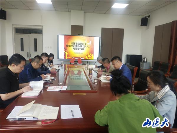 5月12日上午,法医学院党总支理论学习中心组在学院会议室召开学习贯彻习近平新时代中国特色社会主义思想主题教育学习会,专题学习习近平总书记在广东考察时的重要讲话精神和《习近平新时代中国特色社会主义思想专题摘编》第六专题“完善科技创新体系”部分。学院党政班子成员、办公室主任、各党支部书记、专职组织员、分团委书记、辅导员参加集体学习。法医学院党总支书记孙俊红主持会议。