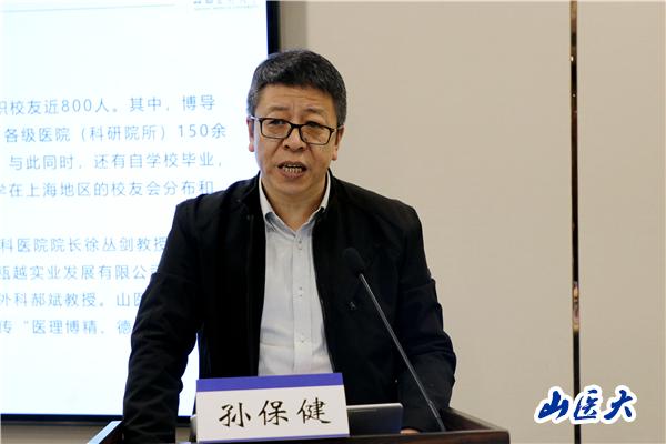 上海校友会常务副会长孙保健致欢迎词并介绍了校友会的发展历程。他指出,上海校友会成立九年来,始终以母校恩师们手口相传的“医理博精、德能高邃”校训为指引,秉承“献身、务实、团结、进取”的校风,积极为广大在沪万象城校友搭好平台,做好服务。